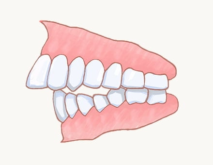 下顎前突とは、上の前歯より下の前歯が前に出てしまっていることをいいます。「受け口」と呼ばれることもあり、食事に影響を及ぼすこともあるため、矯正治療を行うことが望ましいといえます。