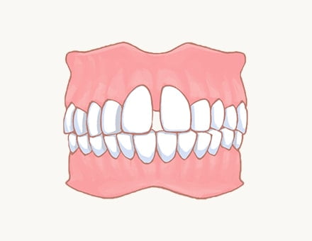空隙歯列(くうげきしれつ)とは、歯と歯の間に隙間が生じていることをいいます。「すきっ歯」ともよばれ、隙間に食べ物が詰まりやすいなどのデメリットがあります。通常空隙歯列の治療は、矯正治療、あるいは詰め物・被せ物で行うことが一般的です。
