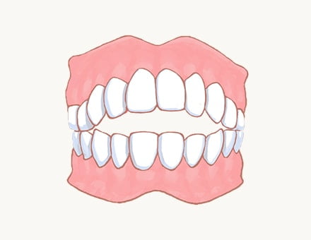 過蓋咬合(かがいこうごう)とは、奥歯をしっかり噛み合わせると、下の前歯が上の前歯に隠れてしまうほど深く咬み合わさってしまう状態のことをいいます。この状態になると、歯茎が歯にぶつかって傷つきやすいくなってしまったり 、顎関節に悪影響を及ぼしてしまう可能性があります。